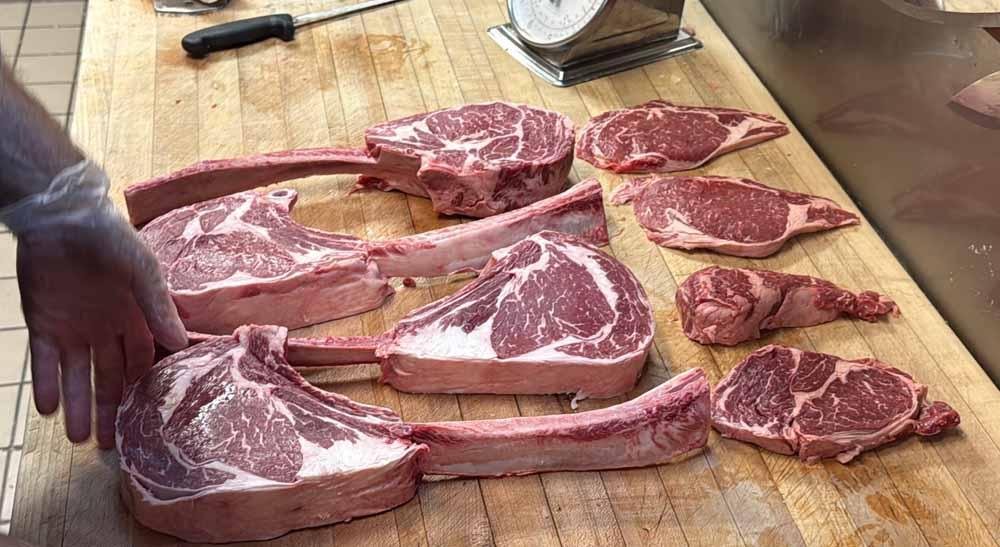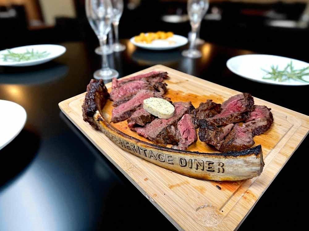 At the Heritage Restaurant Diner, we don’t just serve steak—we hand-cut it from the source. Our 3lb Tomahawk steaks, 20oz bone-in ribeyes, and boneless ribeye cuts all come from the rib primal section of Copper Creek Cattle’s Premium Black Angus Beef, USDA Prime or Choice Upper 2/3. Raised in America’s heartland, Copper Creek beef is known for its marbling, integrity, and flavor that holds up to the fire.