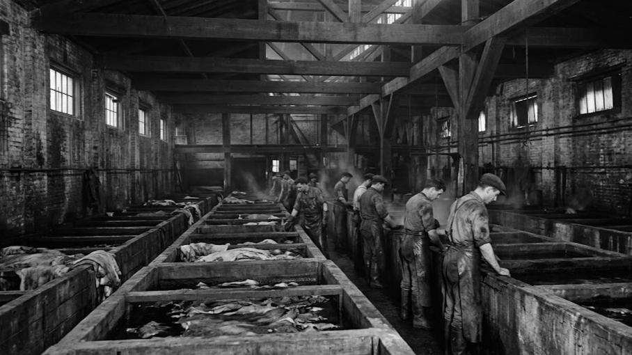 The picture the commission painted was not reassuring. Tannery work involved prolonged exposure to lime, which destroyed the skin of the hands and forearms if protective equipment — rarely provided — was not used. The vats that held hides in the tanning liquor were open, at floor level, and represented a drowning hazard that the commission noted in at least one case had proved fatal. Ventilation in the beam houses was poor or absent. Workers who ground bark or handled the hides in early stages were exposed to anthrax spores — a documented occupational risk that the commission flagged as inadequately addressed.