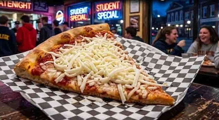 The cold cheese slice traces its roots to a small upstate New York college town, where SUNY Oneonta and Hartwick College students made up a substantial portion of the nocturnal foot traffic. At Tino’s Pizza on Main Street in Oneonta, the cold cheese slice was born in the 1980s out of the late-night post-bar ritual of students descending en masse after last call, forcing the shop to funnel pies straight from the oven into the hands of hungry undergrads.
