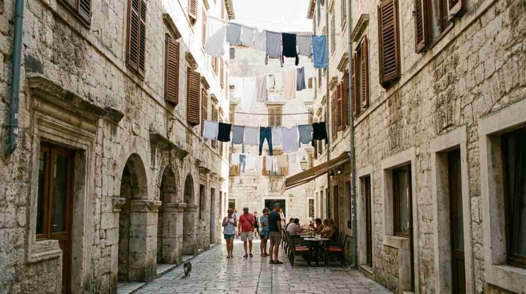 Much of the residential fabric within Diocletian’s Palace is available for short-term rental — the people who live there have understood, correctly, that visitors will pay a premium to sleep inside a Roman emperor’s retirement home. An apartment on the second floor of a building incorporating a section of the original palace’s eastern wall puts you in direct contact with stone approximately 1,700 years old. The Wi-Fi password is written on a card by the kitchen sink. Both facts are equally true, which is what the palace has always been: ancient structure, contemporary life, neither waiting for the other.