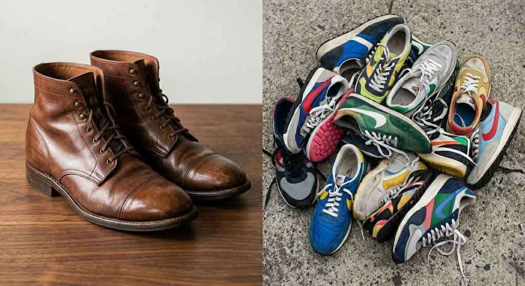 Now we’re buying and discarding at a rate that would have seemed obscene to anyone from an earlier generation. The average American buys approximately seven pairs of shoes a year. Almost all of them end up in landfills, because the synthetic materials used in fast-fashion footwear — bonded leather, injection-molded soles, glued construction — cannot be practically repaired and are not designed to be. You don’t resole a sneaker. You throw it away and buy another sneaker.