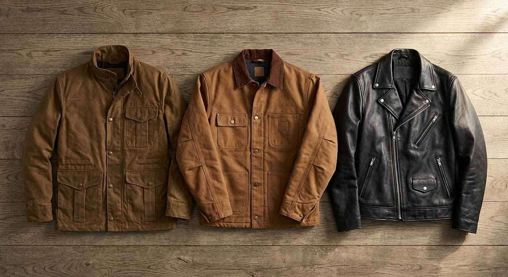 Where they diverge is in use case, and use case is everything. The Filson is for the person who works outdoors, needs weather protection above all else, and can accept a jacket that will look worse every year it does its job properly. The Carhartt is for the person who works with their hands, needs to move freely, and needs gear that can be replaced without ceremony when it finally gives out. The Schott is for the person who rides, or who wants a leather jacket built to a standard that makes most leather jackets look like theater props by comparison.