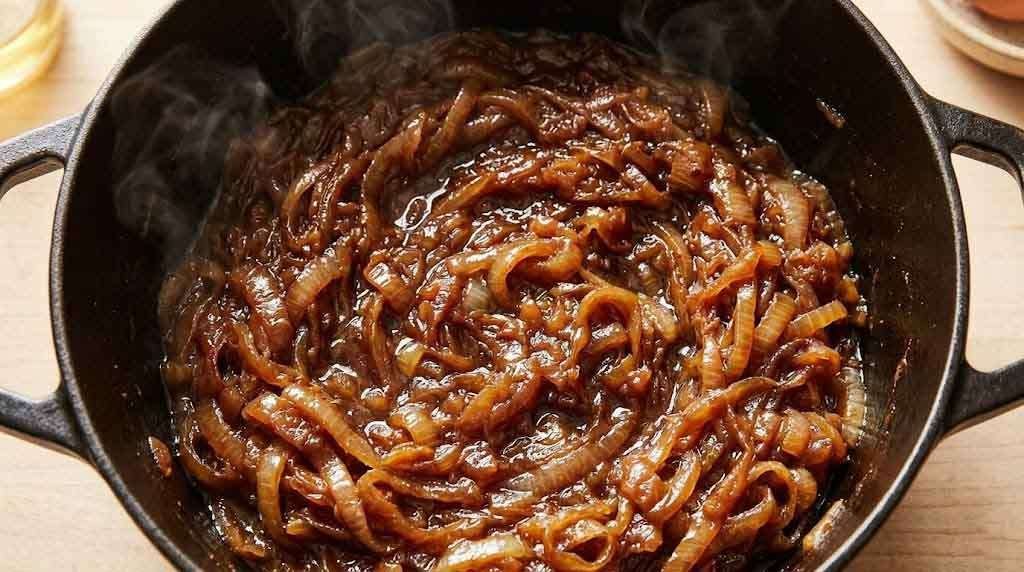 The problem is almost always the same: the onions were not caramelized long enough. True caramelization — the kind that produces a deep amber, jammy, almost marmalade-like result — takes a minimum of 45 to 60 minutes over medium-low heat with nothing but butter, oil, salt, and patience. The sugars in the onion don’t simply soften; they transform, building the complex, savory-sweet backbone that makes the finished soup so distinctly itself.