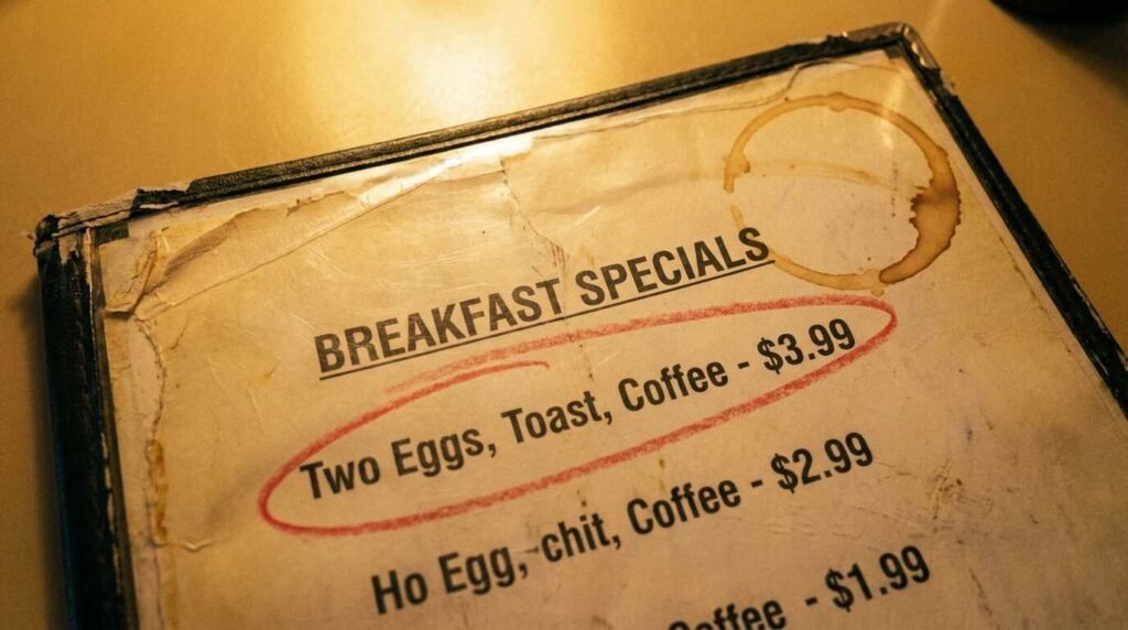 Behavioral economics literature, including menu design research from the Culinary Institute of America, documents the anchor effect in restaurant pricing — but usually from the direction of high-price anchors making mid-range items feel accessible. What Greek diner operators developed was the inverse: a low-price anchor that built enough trust to make the rest of the menu feel fair, without the customer ever consciously running the calculation.