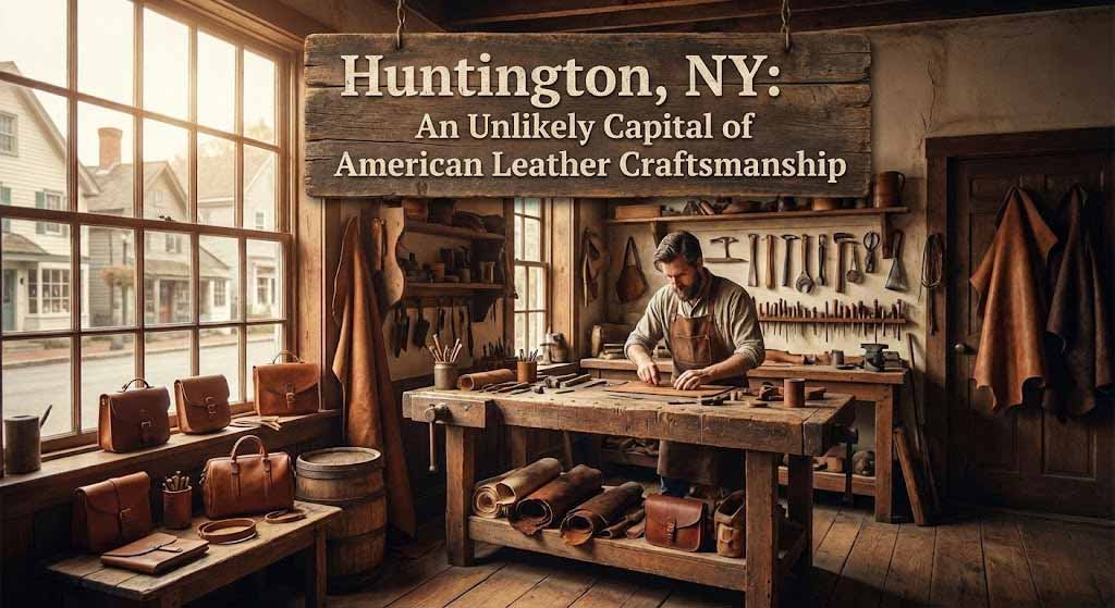 If you are searching for what is still made by hand in Huntington, New York, the answer is more than you might expect. And the finest of it smells of tannin and beeswax, carries a brass lock from Switzerland, and will outlast everything else in the room.