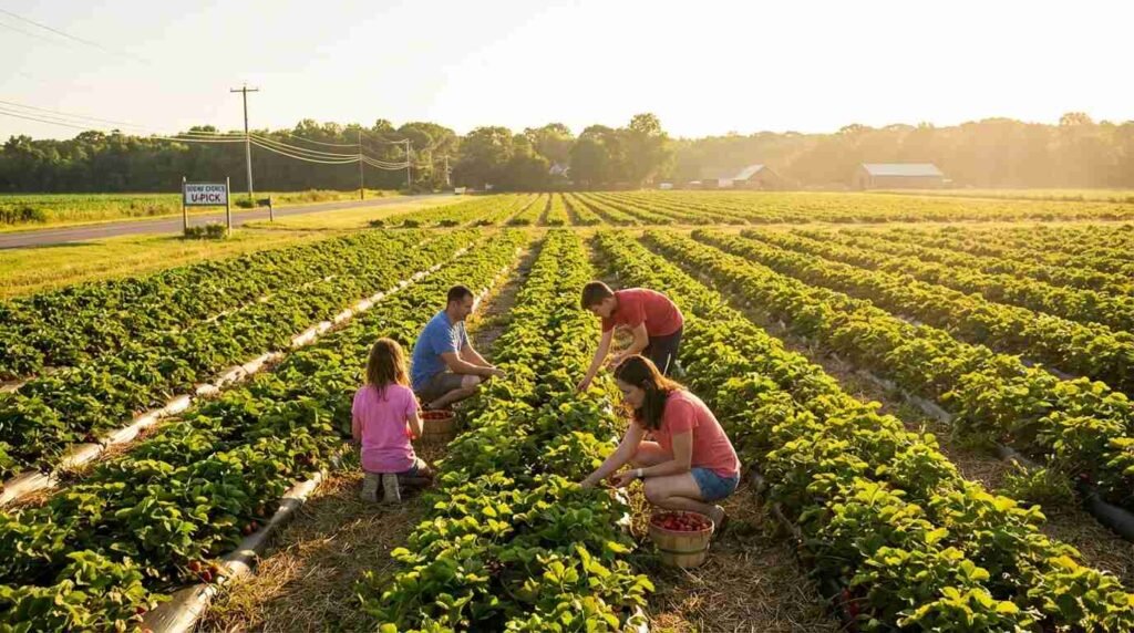 There’s a certain kind of food experience that no restaurant can replicate, no matter how good the chef or how local the sourcing. It happens in a field. You’re bent over a row of strawberries, the Sound Avenue sun is coming in sideways, the berry you just pulled off the plant is warm and overripe and slightly dirty, and you eat it right there without thinking. That’s not a meal. That’s something older than dining culture, older than menus, older than the whole apparatus of someone else feeding you.
