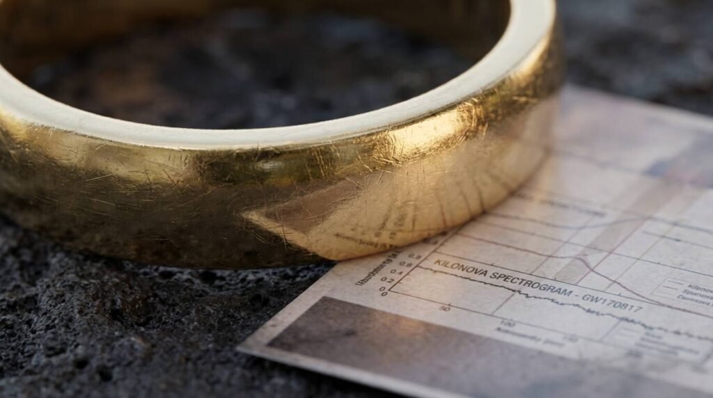 The gold you own was made in a catastrophe. Not metaphorically — not in the sense that all wealth is forged in conflict, though that too may be true — but literally, physically, in an astrophysical event of staggering violence: two neutron stars, each more massive than the sun and each roughly the size of a city, spiraling into each other at a third the speed of light and merging in a collision so energetic that it distorted the fabric of spacetime, created a flash of gamma radiation detectable across the universe, and scattered into the surrounding space a quantity of gold that, when later calculated by astrophysicists, was found to exceed the mass of all the gold in the solar system combined. By a large margin.