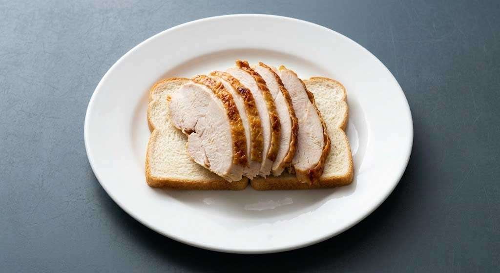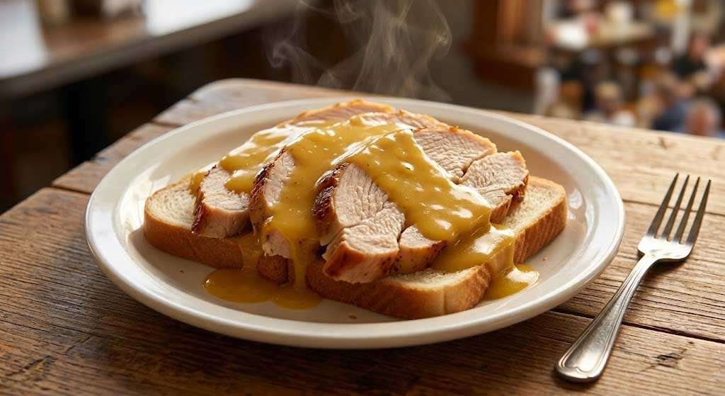 While the gravy finishes, slice the turkey. Aim for pieces about a quarter-inch thick — thin enough to fan across the bread, thick enough to have presence on the plate. This is not a dish where the turkey disappears into the bread. It should be visible, abundant, and clearly the center of attention. If you’re a fan of turkey-forward diner plates, you’ll also want to check out The Heritage Triple-Decker Club for another take on roasted turkey done right.