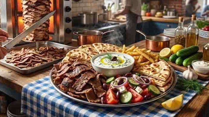 Lamb on a vertical spit is one of the oldest cooking methods in human memory — fire, salt, time, and patience spinning slowly against heat until the outer layer goes golden and the fat renders into something close to revelation. The gyro, at its core, is not a sandwich. It’s a philosophy of accumulation: thin shavings of marinated meat built up in layers, each slice exposing the next to the heat, the whole greater than the sum of its parts.