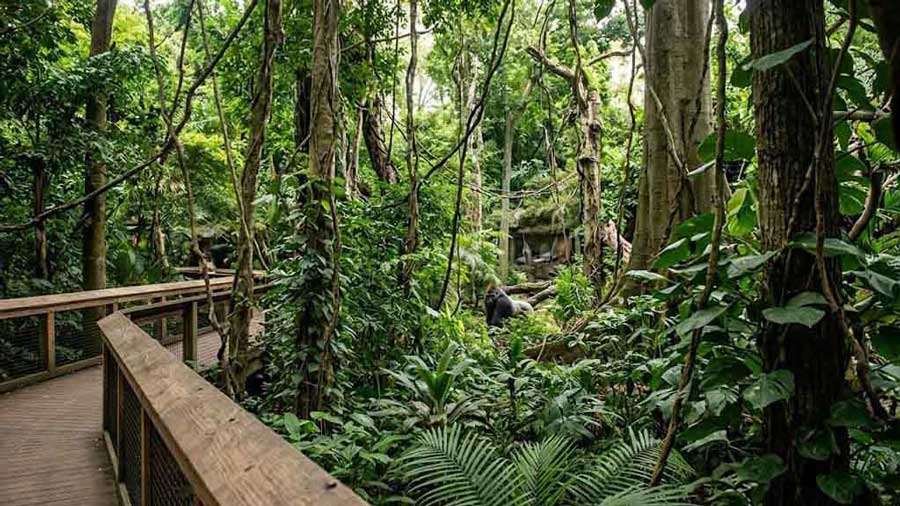 But here is the hard fact that no exhibit brochure leads with: a western lowland gorilla in the wild ranges between 9 and 14 square miles. The Congo Gorilla Forest gives them 6.5 acres. That is not a rounding error. It is a different order of magnitude. A wild gorilla troop covers more ground in a single morning than the entire exhibit. When you sit with that number, what you are really looking at is not a habitat. You are looking at a very sophisticated enclosure. That distinction matters for everything that follows.