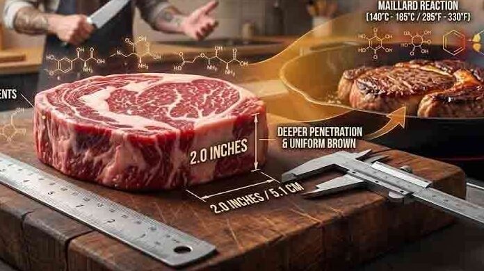 Every great butcher gives the same advice, and most home cooks hear it without truly understanding why: get the thick cut. Not 3/4 of an inch. Not one inch on sale. Two inches — the kind of cut that feels almost unreasonable in your hand, the kind that requires patience and a certain trust in fire and time. That recommendation isn’t aesthetic preference or upselling strategy. It is, at its core, a directive rooted in one of the most complex and consequential chemical reactions in all of culinary science — the Maillard reaction — and in the unforgiving physics of heat transfer through muscle tissue.