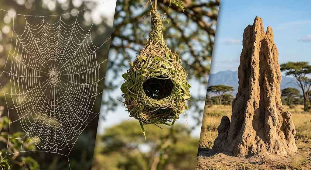 The animal kingdom is saturated with construction projects that would humble most engineering firms. Caddisfly larvae build portable protective cases from silk, sand grains, and tiny pebbles — each species constructing a case with geometry so consistent that entomologists can identify the species from the case alone, without ever seeing the insect inside. The weaver bird constructs an inverted, gourd-shaped nest with an entrance tunnel that discourages predators, woven from strips of grass with a structural integrity that can support dozens of times the bird’s own weight. The Australian bowerbird builds elaborate display stages decorated with colored objects — blue bottle caps, berries, flowers — arranged with an aesthetic precision that researchers have compared to forced perspective in Renaissance painting.