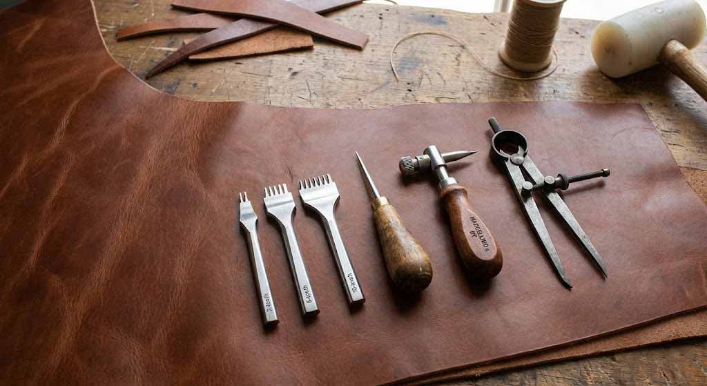 Before a single stitch is sewn, the craftsman’s relationship with the leather begins at the marking stage. At the Marcellino NY bench, I use French-style pricking irons—multi-toothed steel instruments that resemble a delicate fork—to mark the stitch line along a grooved channel cut into the surface of the leather. The groover itself serves a dual purpose: it creates a recessed track so the finished thread sits flush with the surface rather than proud of it, and it provides a visual guide that keeps the stitch line parallel to the edge at a consistent distance, typically three to five millimeters for fine goods (Armitage Leather, “Traditional Saddle Stitch Course Curriculum,” 2024).