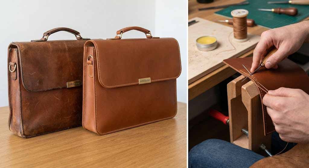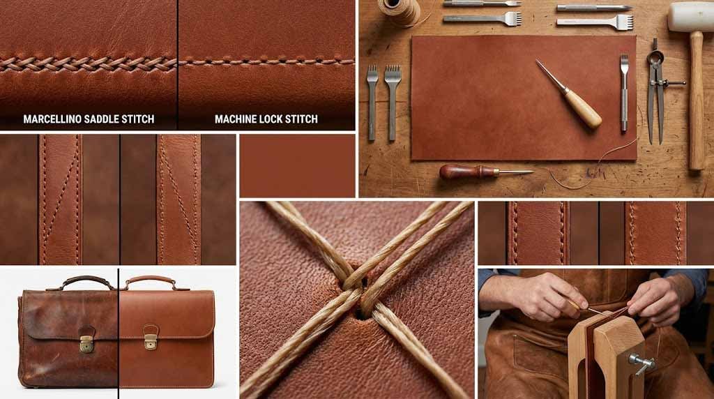 There is a moment—imperceptible to anyone who hasn’t spent a decade at a stitching pony—when the awl finds the leather’s grain and the resistance shifts from defiance to acceptance. The blade enters not because you forced it, but because you understood the hide. You read its density the way a surgeon reads an X-ray or a seasoned restaurateur reads the silence of a dining room at 7:14 on a Friday evening, that half-second before the flood. I have spent twenty-five years behind the pass at The Heritage Diner in Mount Sinai, and another decade-plus at my bench crafting English bridle leather briefcases under the Marcellino NY name. In both disciplines, the same truth recurs with stubborn persistence: the things that matter most are the things no machine can do. The saddle stitch is one of those things. It is the oldest, strongest, most elegant method of joining two pieces of leather ever devised, and despite two centuries of industrial sewing innovation, not a single machine on earth can reproduce it. This is the story of why.