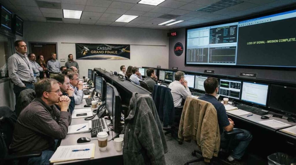 The Cassini engineers occupy a different moral position from either. They did not assume the right to decide that Cassini’s life was worth less than the possibility of Enceladus’s life. They were given that responsibility, by the logic of the mission, by the ethics of planetary protection, by the simple fact that Cassini was their creation and therefore their responsibility. They accepted it. They built the timeline for the Grand Finale. They programmed the final maneuver. They sat in the control room in Pasadena and watched the telemetry flatline at 7:55 AM local time on September 15, 2017.
