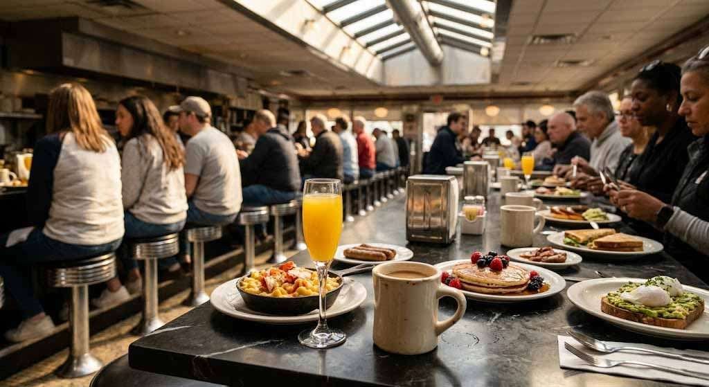 It is no longer competing only with other diners. It is competing with brunch restaurants in Hoboken, with hotel dining rooms in Newark, with any mid-priced full-service operation in the metropolitan area that has a decent cocktail program and table service. This competition changes the pressure on the kitchen, the training requirements for the staff, and the expectations management has to manage every morning when the doors open.
