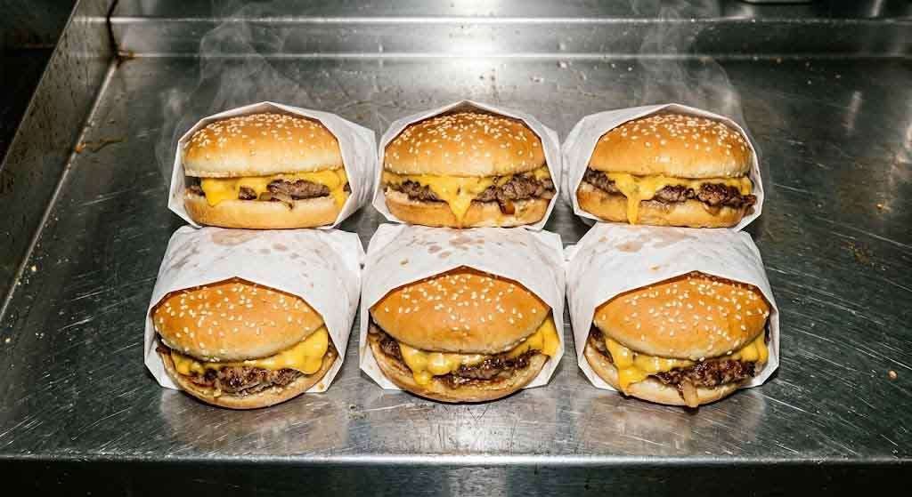 Ten feet. That’s the operational radius. Within ten feet, you can reach the grill, the buns, the cheese, the register, and the customer. The whole business model is built on minimizing the distance between those five things. When you remove distance from food service, you remove time. When you remove time, you increase volume. Volume is the whole game.